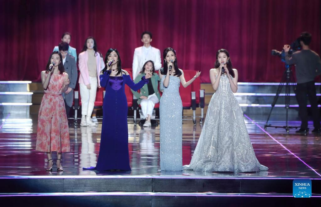 Actresses perform at the awarding ceremony of the 34th China Film Golden Rooster Awards in Xiamen, southeast China's Fujian Province, Dec. 30, 2021. The awarding ceremony of the 34th China Film Golden Rooster Awards was held in Xiamen on Thursday. (Xinhua/Lin Shanchuan)