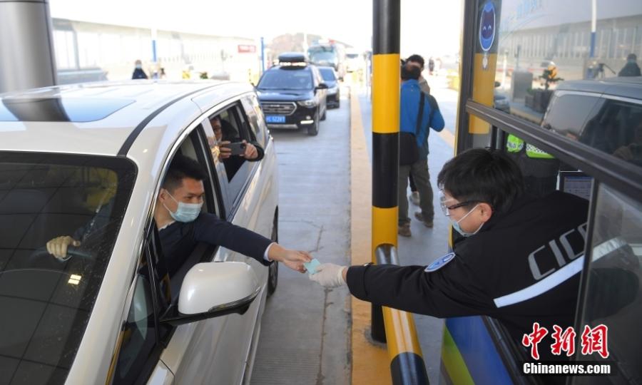 A driver pays a service fee before entering the Zhoushan-Daishan Bridge officially opened to traffic, east China's Zhejiang province, Dec 29, 2021. (China News Service/Wang Gang)