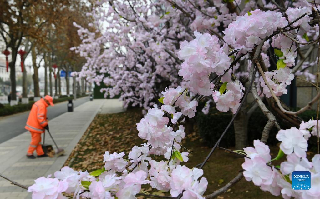 A sanitation worker cleans a road in Xi'an, northwest China's Shaanxi Province, Dec. 31, 2021. Xi'an imposed closed-off management for communities and villages on Dec. 23 in an effort to curb the spread of the latest COVID-19 resurgence. (Xinhua/Tao Ming)