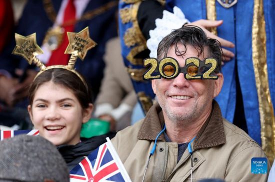 People watch the annual New Year's Day Parade in London, Britain, Jan. 1, 2022. (Xinhua/Li Ying)
