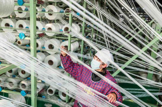 A worker works at a chemical fiber company in Zunhua, north China's Hebei Province, Jan. 1, 2022. (Photo by Liu Mancang/Xinhua)