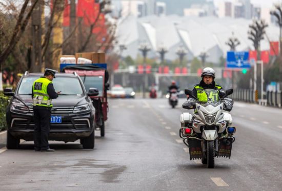 A policeman patrols in Qianxi, southwest China's Guizhou Province, Jan. 1, 2022. (Photo by Fan Hui/Xinhua)
