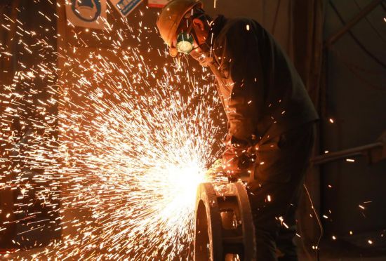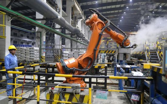 A worker works in a plant producing zinc products in Changning, central China's Hunan Province, Jan. 1, 2022. (Photo by Cao Zhengping/Xinhua)