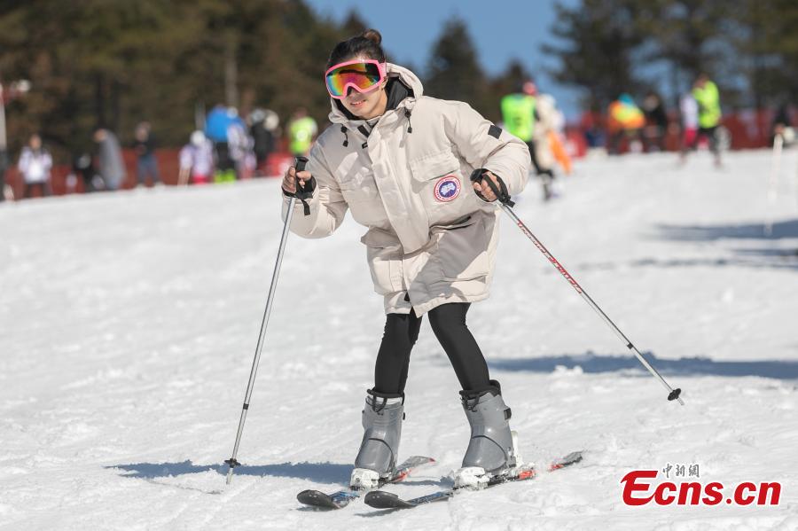 A tourist skis at a snow park in Yichun, east China's Jiangxi Province, Jan. 4, 2022. (Photo: China News Service/Liu Lixin)