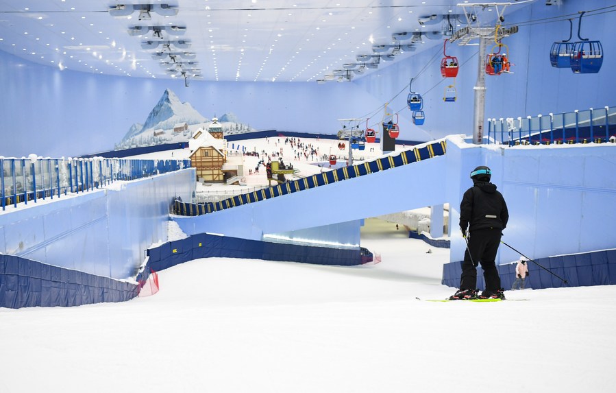 A skier hits the slopes at an indoor ski resort in Guangzhou, south China's Guangdong Province, June 18, 2019. (Xinhua/Deng Hua)