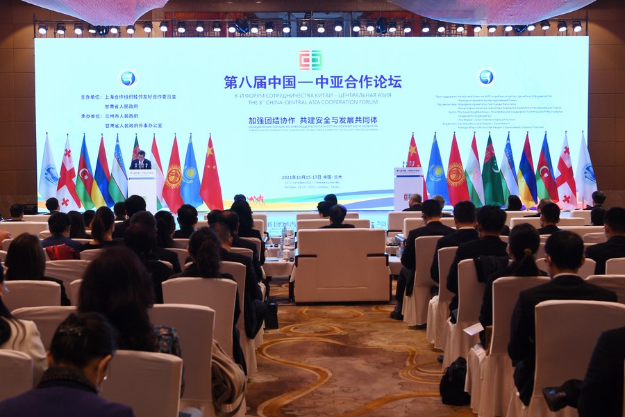 Photo taken on Oct. 16, 2021 shows the opening ceremony of the 8th China-Central Asia Cooperation Forum in Lanzhou, capital of northwest China's Gansu Province. (Xinhua/Fan Peishen)