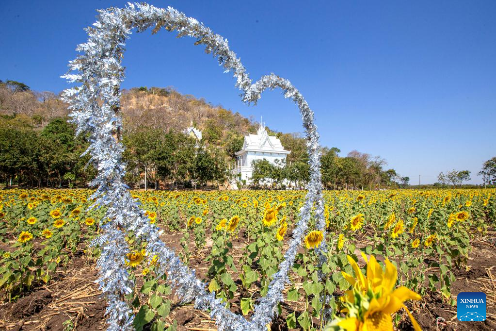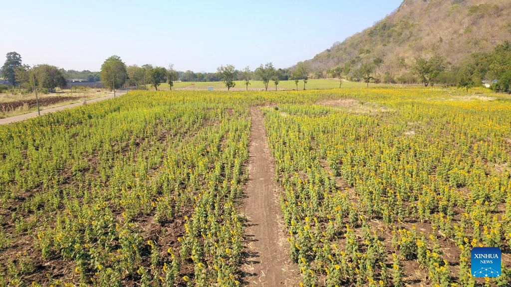 Photo taken on Jan. 6, 2022 shows sunflower fields in Lopburi, Thailand. Lopburi province is famous for a large sunflower plantation in Thailand. From November to January, the golden sunflower fields attract many tourists. (Xinhua/Wang Teng)