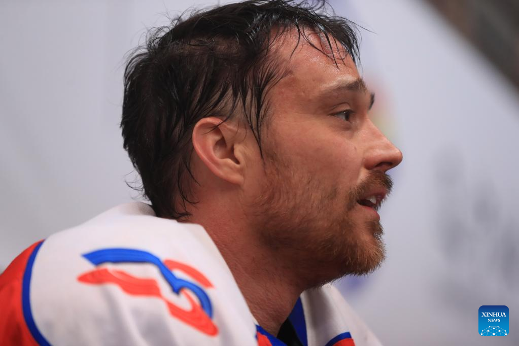 Ryan changes clothes before playing ice hockey in Shenyang, northeast China's Liaoning Province, Jan. 6, 2022. Ryan is a 38-year-old Canadian living in Shenyang. Ryan came to China for the first time in 2013 and now works as an engineer at a company in Shenyang. Ryan is an enthusiast devoted to winter sports, especially ice hockey. Through weekly training in ice hockey, Ryan made friends with many local ice hockey lovers. As the 2022 Beijing Olympics approaches, Ryan is looking forward to a great performance from all the athletes. He wishes the Beijing Winter Olympics a great success. (Xinhua/Yang Qing)