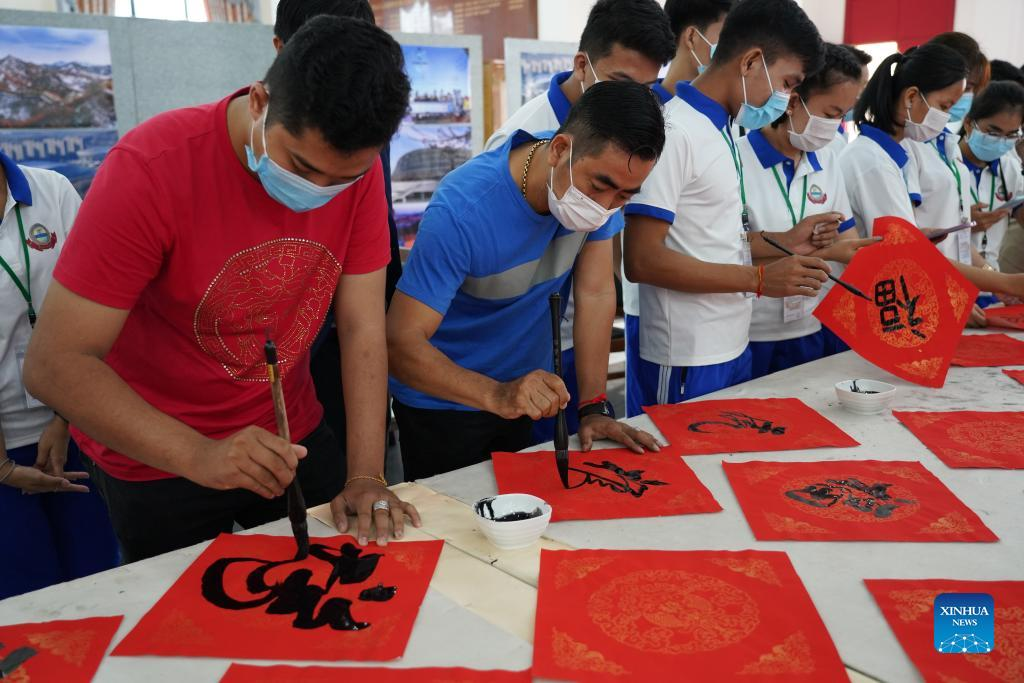 During the half-day event held in the Cambodian capital Phnom Penh, participants wrote Chinese calligraphy to voice their support for the Beijing Winter Olympics and offer best wishes for the Spring Festival.
