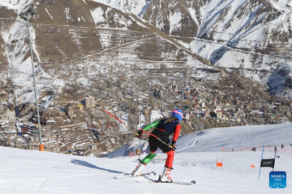 Samin Shemshaki competes during a qualification competition for the Olympics held by Iran's national skiing team at the Darbandsar Ski Resort in Tehran, Iran, Jan. 9, 2022. (Xinhua/Gao Wencheng)