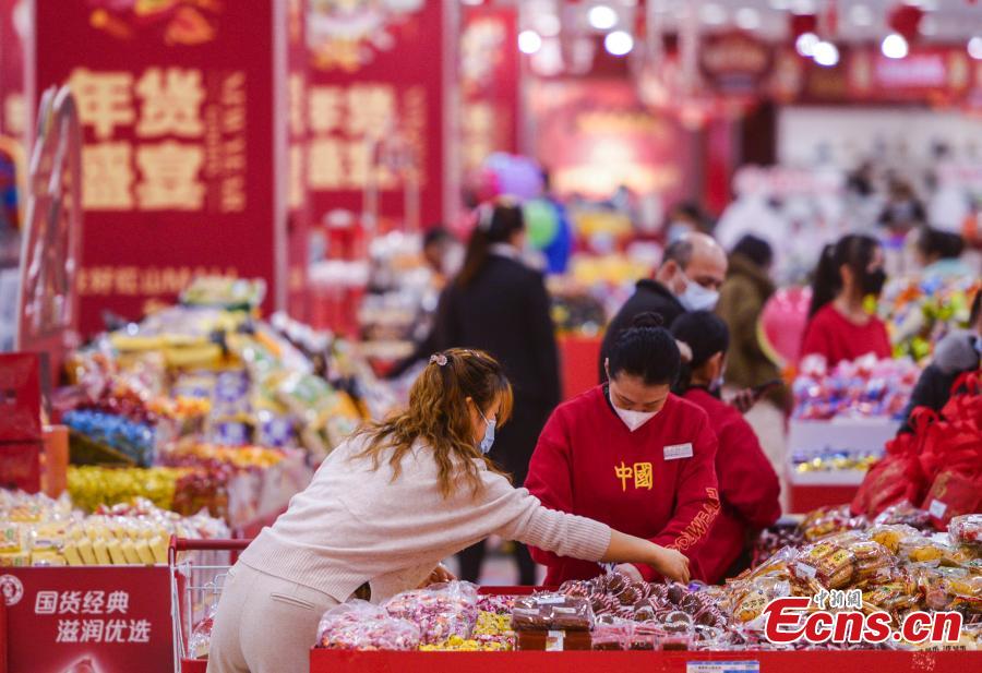 Local citizens purchase goods at the “Spring Festival Shopping area” in a mall in Urumqi, capital of northwest China’s Xinjiang Uyghur Autonomous Region on January 10, 2022. (Photo: China News Service/Liu Xin)