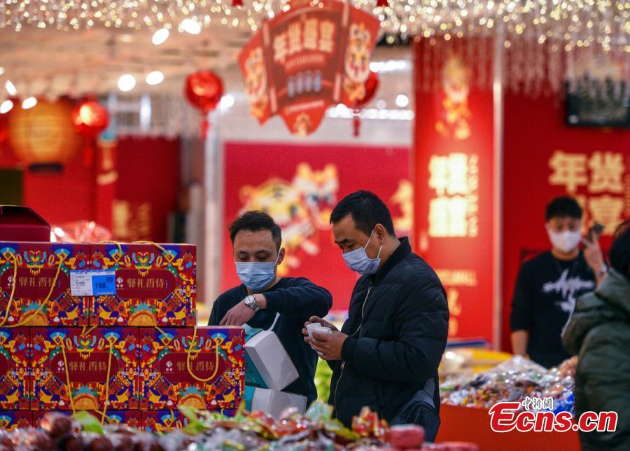 Local citizens purchase goods at the “Spring Festival Shopping area” in a mall in Urumqi, capital of northwest China’s Xinjiang Uyghur Autonomous Region on January 10, 2022. (Photo: China News Service/Liu Xin)