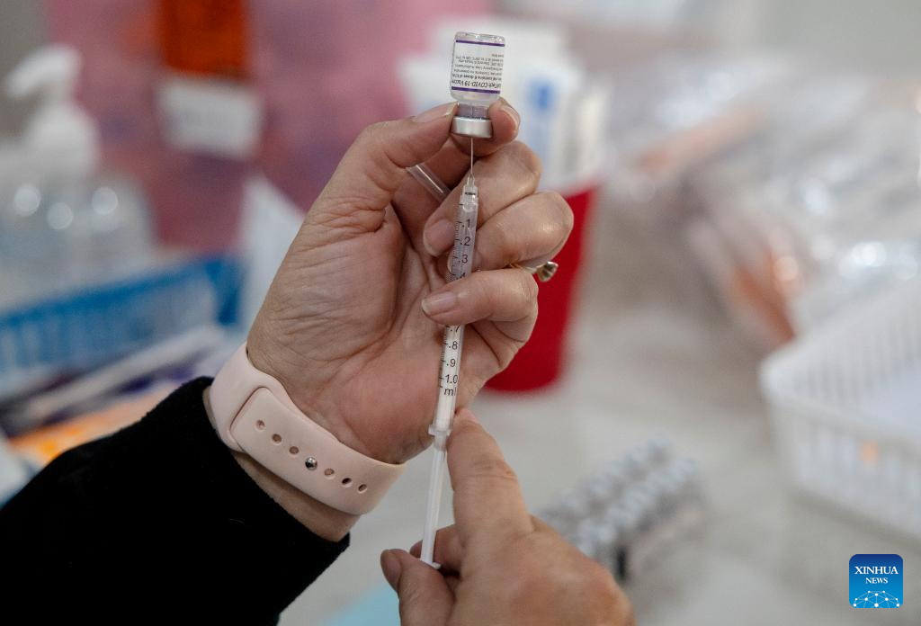 A medical staff member prepares a dose of COVID-19 vaccine at a vaccine clinic in San Antonio, Texas, the United States, Jan. 9, 2022. The Omicron variant has driven a new surge of COVID-19 cases in Texas. (Photo by Nick Wagner/Xinhua)