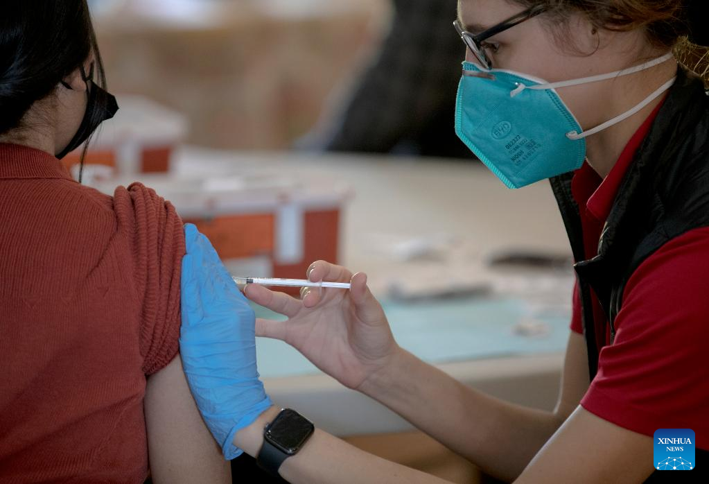 A medical staff member inoculates a person with a dose of COVID-19 vaccine at a vaccine clinic in San Antonio, Texas, the United States, Jan. 9, 2022. The Omicron variant has driven a new surge of COVID-19 cases in Texas. (Photo by Nick Wagner/Xinhua)