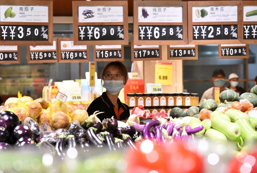 A customer buys vegetables at a supermarket in Handan, North China's Hebei province. (Photo/Xinhua)
