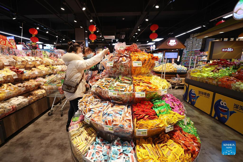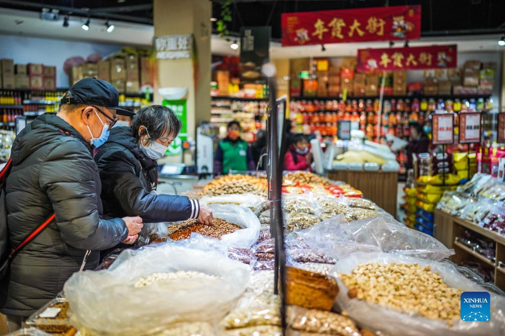 Customers select goods at a market in Guiyang, southwest China's Guizhou Province, Jan. 11, 2022. (Xinhua/Tao Liang)