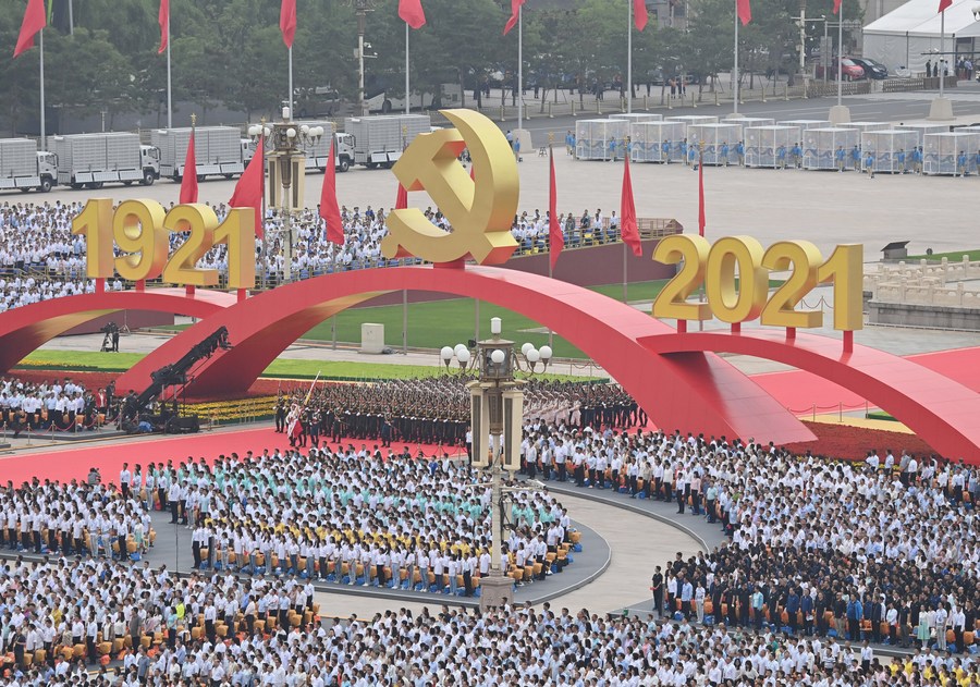 A ceremony marking the centenary of the Communist Party of China is held at Tian'anmen Square in Beijing, capital of China, July 1, 2021. (Xinhua/Li Xiang)