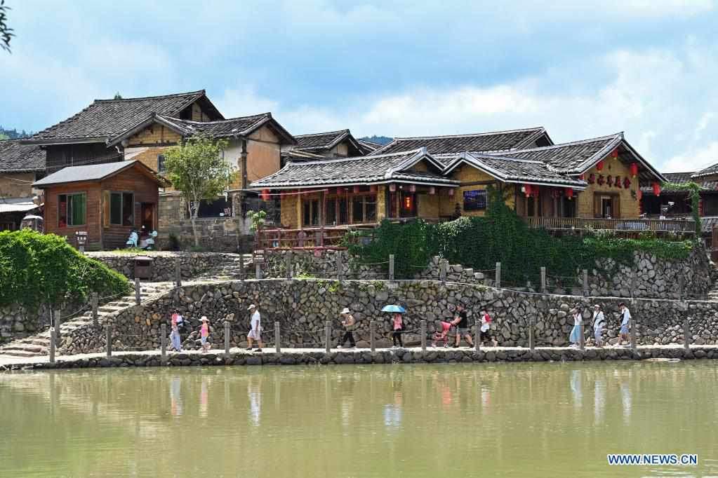 Tourists visit Yunshuiyao ancient town in Nanjing County, southeast China's Fujian Province, Aug. 17, 2021. (Xinhua/Song Weiwei)
