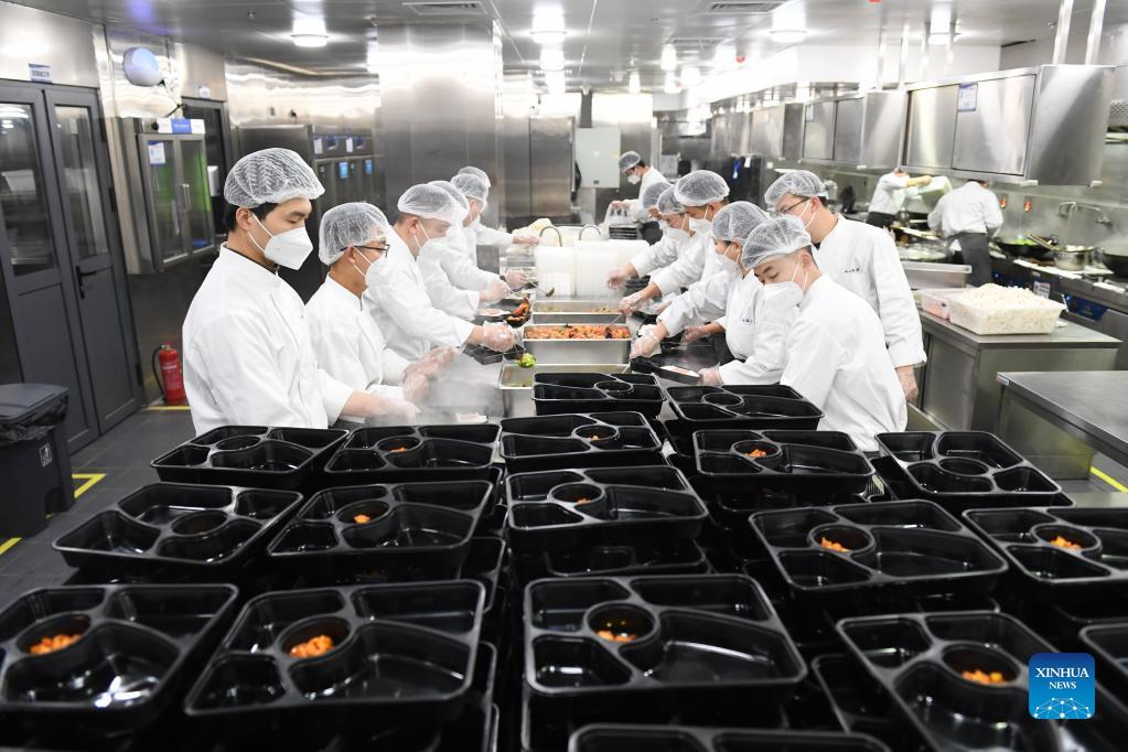 Staff members pack takeout food at a restaurant in Xi'an, capital of northwest China's Shaanxi Province, Jan. 13, 2022. Local authorities advance the orderly resumption of catering service as the city is witnessing a continuing drop of local COVID-19 cases amid the latest resurgence. Catering enterprises will receive take-out orders with COVID-19 prevention measures but dine-in services will remain suspended. (Xinhua/Li Yibo)
