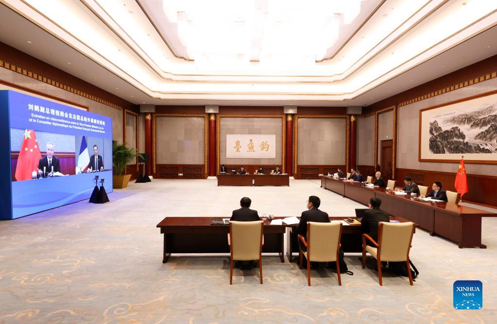 Chinese vice premier holds virtual meeting with French official