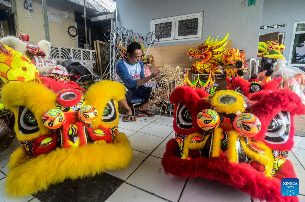 People make traditional lion head for upcoming Chinese New Year in Bogor, Indonesia (4)