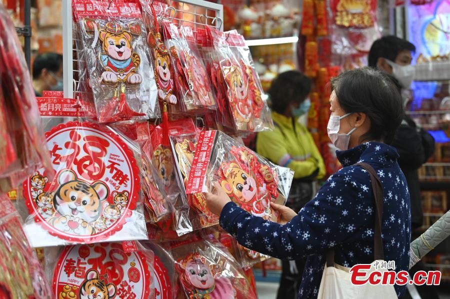 Citizens in Hong Kong Special Administrative Region (HKSAR) buy decorations such as couplets and lanterns for the upcoming Chinese New Year, the year of the tiger. (Photo: China News Service/Li Zhihua)