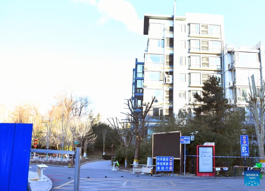 Photo taken on Jan. 16, 2022 shows the view of a residential compound under close-off management in Haidian District of Beijing, capital of China. Beijing reported one new locally-transmitted COVID-19 case Saturday, local health authority said. The community where the comfirmed case lives is under close-off management. (Xinhua/Ren Chao)