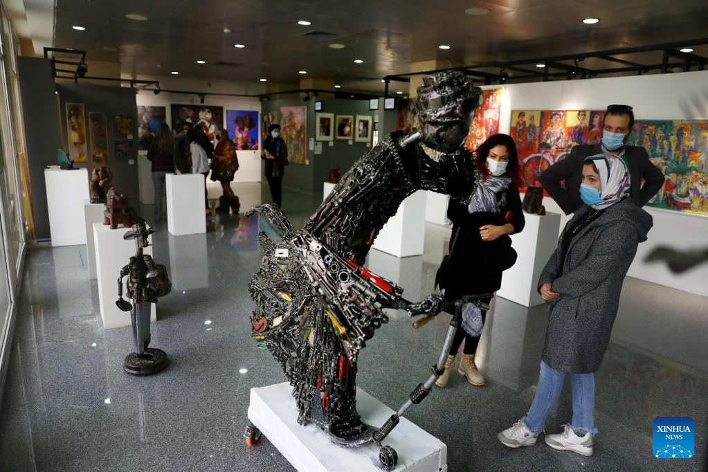 Photo taken on Jan. 16, 2022 shows a sculpture at an art exhibition during Egypt's 1st World Art Forum in Cairo, Egypt. (Xinhua/Ahmed Gomaa)