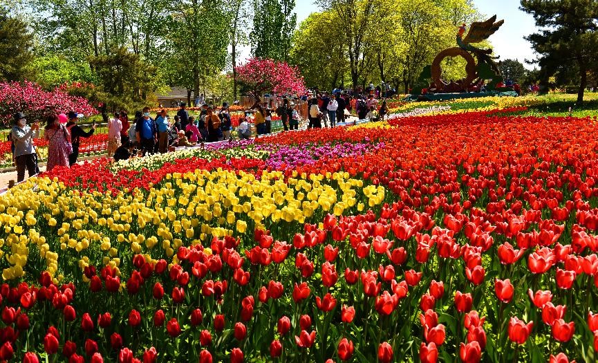 Visitors appreciate over 200,000 tulips of over 100 species at the Beijing Botanical Garden, April 18, 2021. (People’s Daily Online/ Li Wenming)