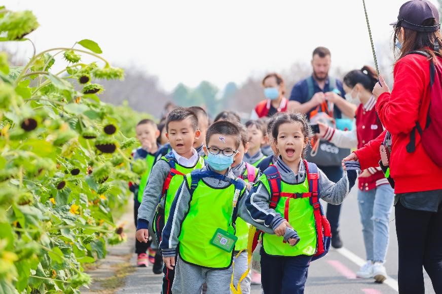 Children learn knowledge of plants during a tour of the Shanghai Chenshan Botanical Garden under the guidance of their teachers, Oct. 19, 2021. (People’s Daily Online/Jiang Huihui)