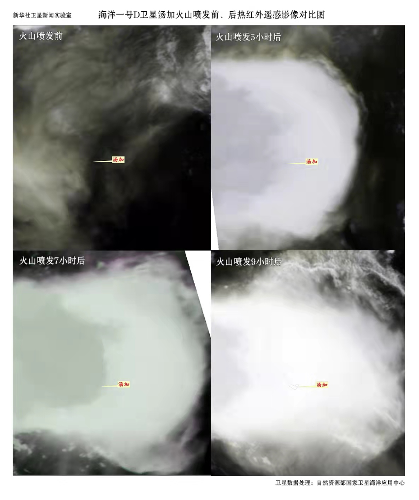 Satellite images show Tonga's Hunga Ha'apai island's thermal infrared cloud pictures before and after the eruption. (Photo credit: NSOAS)