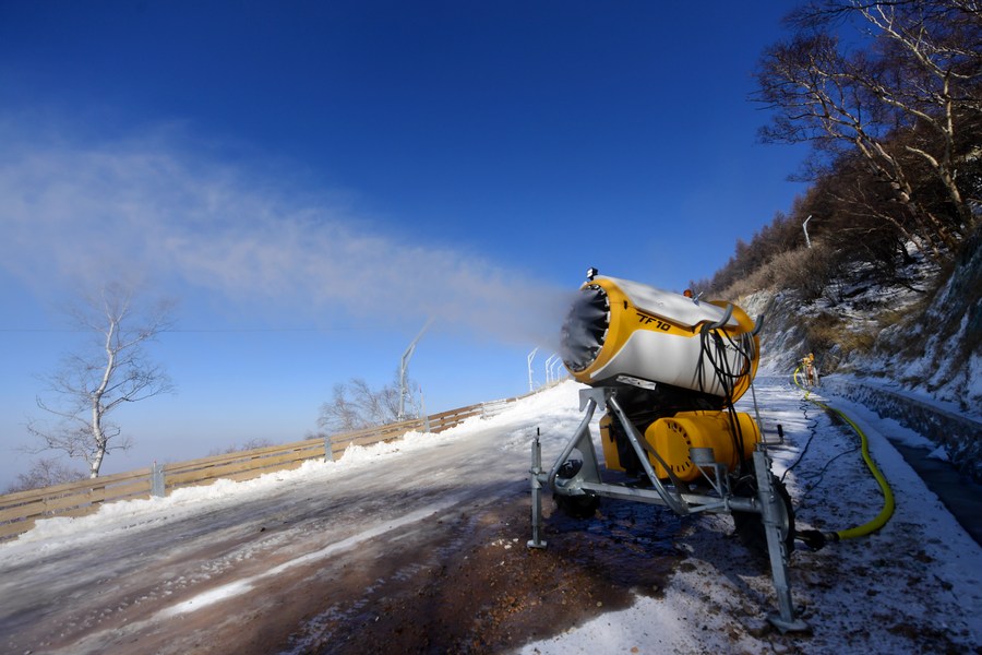 A photo taken on Nov. 16, 2021 shows the snowmaking system in National Alpine Skiing Centre in Beijing, capital of China. (Xinhua/Zhang Chenlin)