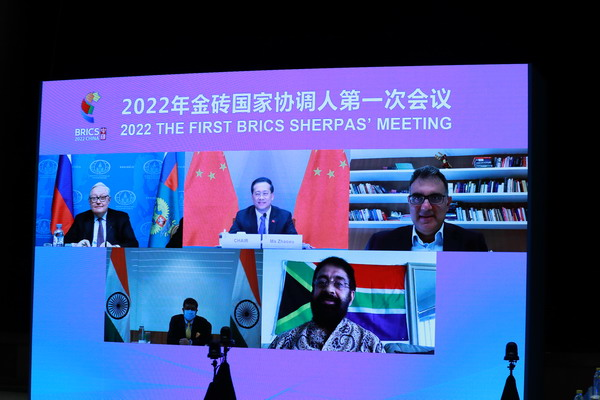 On January 18, 2022, China's BRICS Sherpa and Vice Foreign Minister Ma Zhaoxu hosted 2022 the First BRICS Sherpas' Meeting attended by the BRICS Sherpas of Russia, India, Brazil and South Africa as well as?representatives of relevant?departments of China.