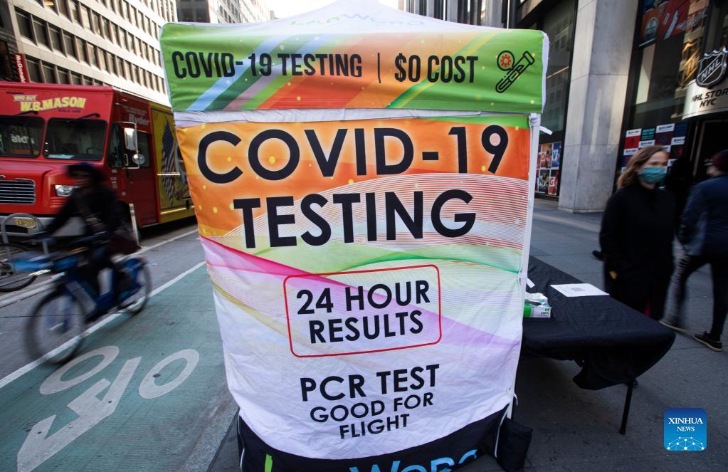 A COVID-19 testing site is seen in New York, the United States, Dec. 13, 2021. The number of COVID-19 cases in the U.S. topped 50 million on Monday, according to data from Johns Hopkins University. (Xinhua/Wang Ying)