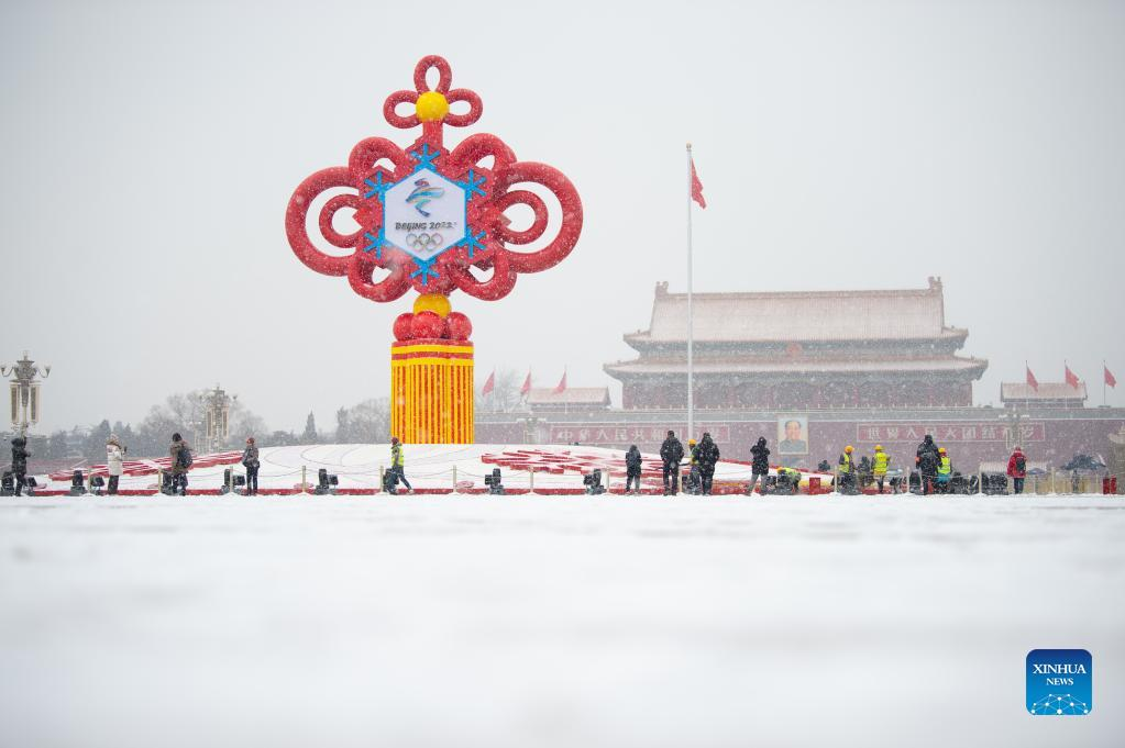 Photo taken on Jan. 20, 2022 shows the snow scenery of the Tian'anmen Square in Beijing, capital of China. (Xinhua/Chen Zhonghao)