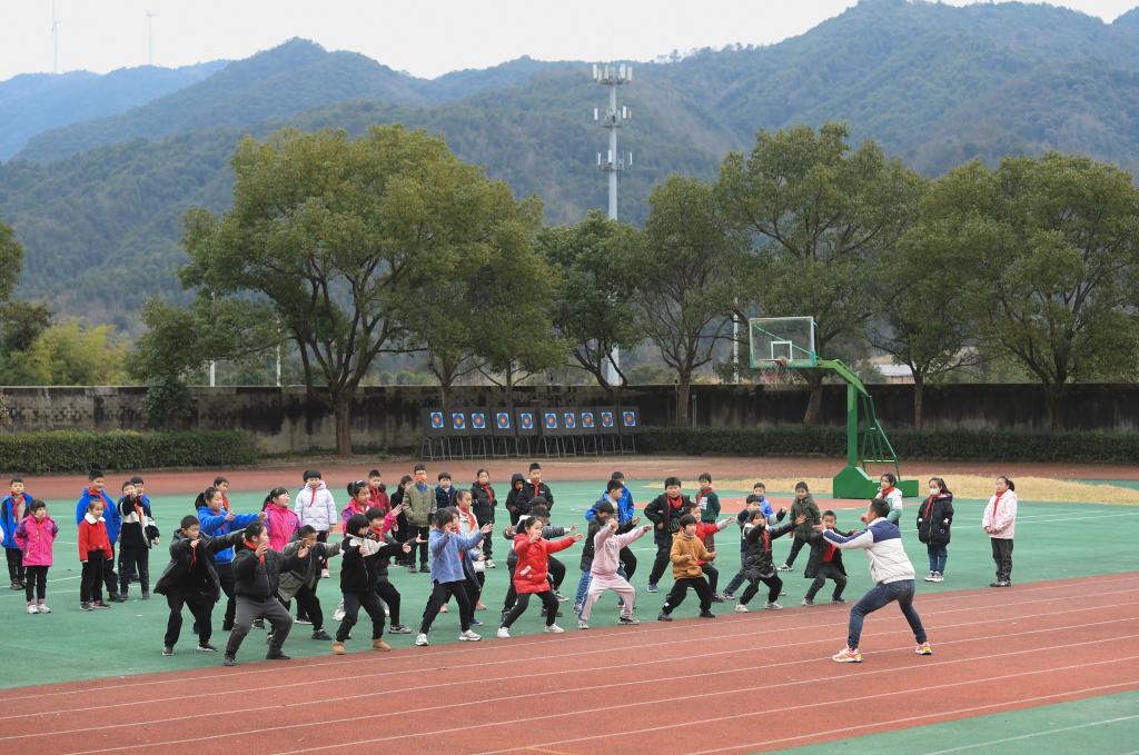 Tong Panfeng instructs students basic movements of lion dance at a primary school of Qiantong ancient town in Ninghai County, east China's Zhejiang Province, Jan. 21, 2022. Tong Panfeng is an enthusiast of lion dance. At the age of 26, he quit his job to learn lion dance all over the country. In 2016, with the support of the local government, Tong returned to his hometown to promote the lion dance into school activities with an aim to help primary and middle school students keep fit and inherit the traditional culture. Thanks to the efforts of Tong, many local primary and middle school students joined the lion dance team of the town and they often practice lion dance in their spare time. In recent years, this team has achieved good results in provincial and national championships for many times.Lion dance is not only a sport but also a cultural tradition which has made the the ancient town full of vitality.(Xinhua/Weng Xinyang)