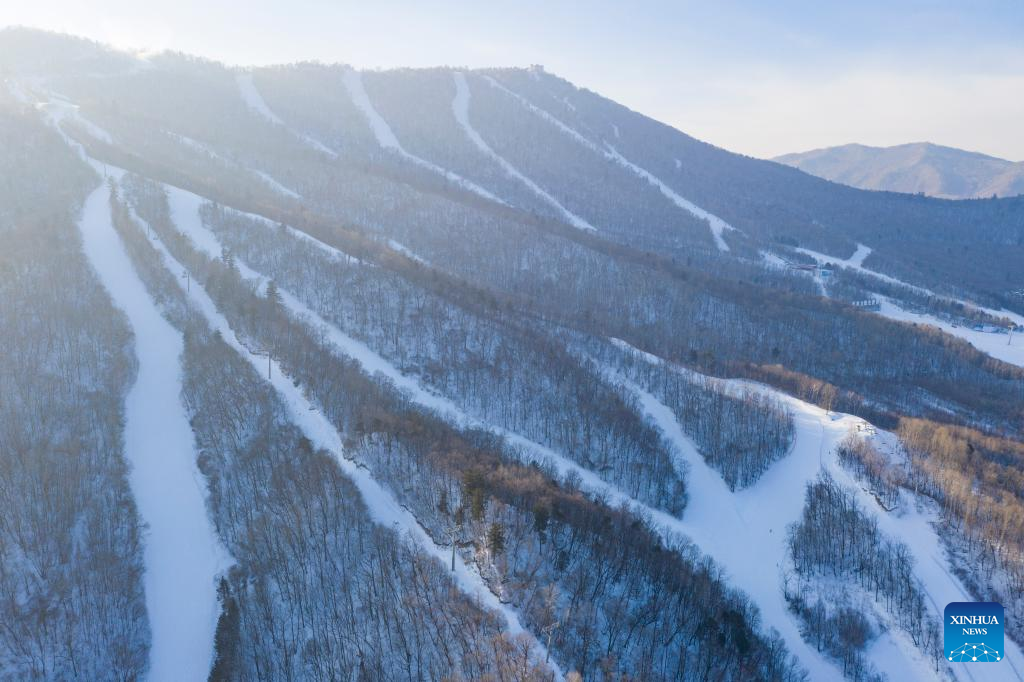 Aerial photo taken on Jan. 21, 2022 shows Yabuli Ski Resort in Harbin, northeast China's Heilongjiang Province. Yabuli, located in northeastern China, is the cradle of Chinese winter sports. Boasting a professional ski area, Yabuli Resort hosted many national, continental and international winter games like FIS snowboard world cup, World Winter Universiade and the Asian Winter Games. (Xinhua/Xie Jianfei)