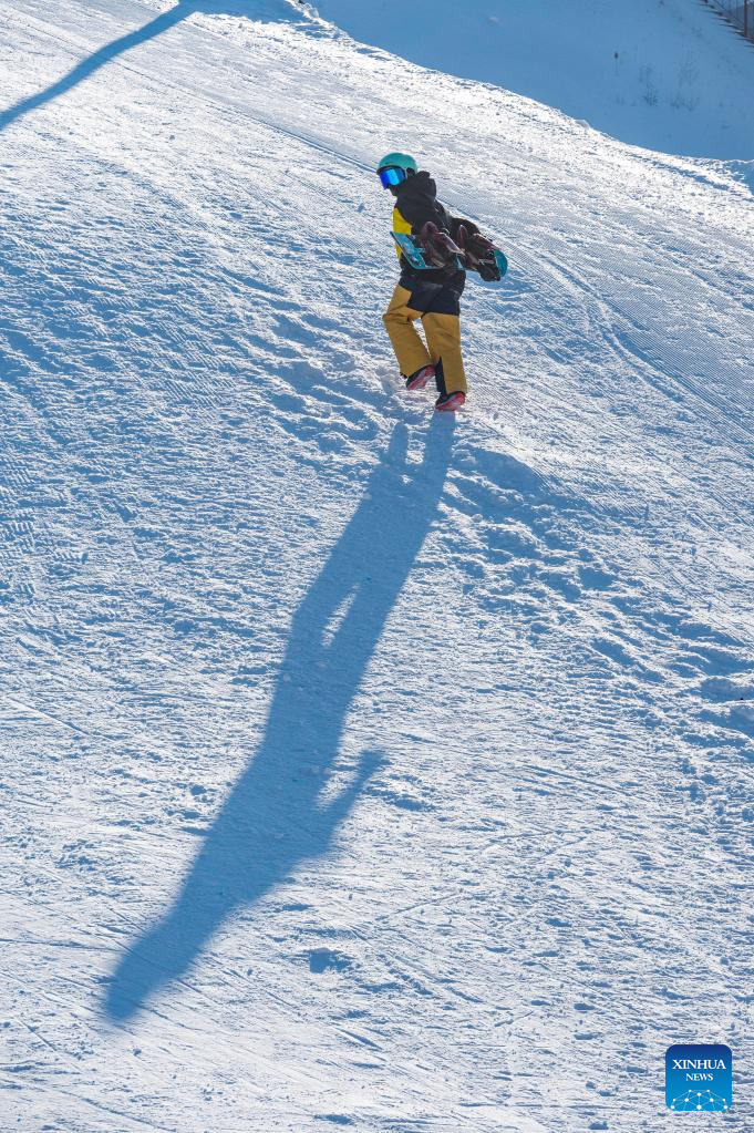 A skier from Heilongjiang Province participates in a training session at Yabuli Ski Resort in Harbin, northeast China's Heilongjiang Province, Jan. 21, 2022. Yabuli, located in northeastern China, is the cradle of Chinese winter sports. Boasting a professional ski area, Yabuli Resort hosted many national, continental and international winter games like FIS snowboard world cup, World Winter Universiade and the Asian Winter Games. (Xinhua/Xie Jianfei)