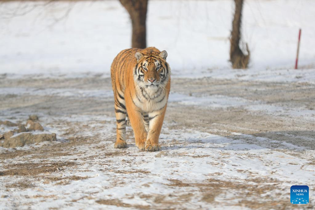 A Siberian tiger is seen at Guaipo Siberian Tiger Park in Shenyang, northeast China's Liaoning Province, Jan. 24, 2022. The 2022 Chinese Lunar New Year falls on Feb. 1. It is based on a 12-year Zodiac cycle of characters, with 2022 being the Year of the Tiger. (Xinhua/Yang Qing)