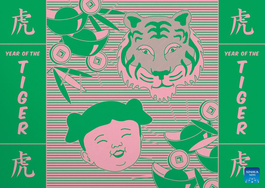 Picture shows the illustration of the 2022 Year of the Tiger stamps published by New Zealand Post. New Zealand Post has published the 2022 Year of the Tiger stamps to celebrate the upcoming Chinese New Year. It is the 26th consecutive year that New Zealand has published Chinese zodiac stamps. (NZ Post/Handout via Xinhua)