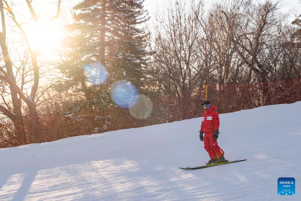 A skier participates in a training session at Yabuli Ski Resort in Harbin, northeast China's Heilongjiang Province, Jan. 21, 2022. The upcoming Beijing 2022 Winter Olympic Games created an intense Olympic atmosphere in Heilongjiang, a major province of winter sports in China. (Xinhua/Xie Jianfei)