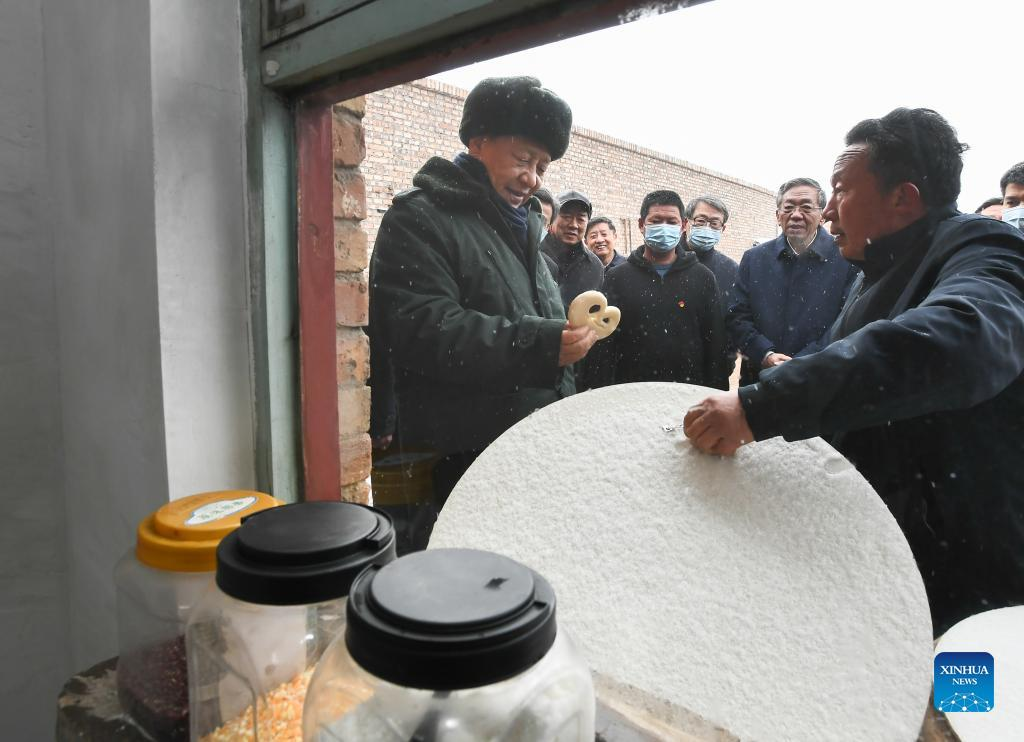 Chinese President Xi Jinping, also general secretary of the Communist Party of China (CPC) Central Committee and chairman of the Central Military Commission, visits a villager's home in Fengnanyuan Village, Shizhuang Township of Huozhou City, north China's Shanxi Province, Jan. 26, 2022. Xi on Wednesday began his visit to Shanxi Province ahead of the Spring Festival, or the Chinese New Year. (Xinhua/Xie Huanchi)