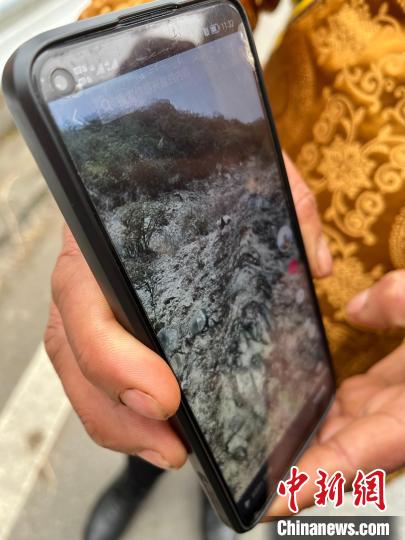 A villager shows a video clip of a wild giant panda. (Photo/He Shaoqing)
