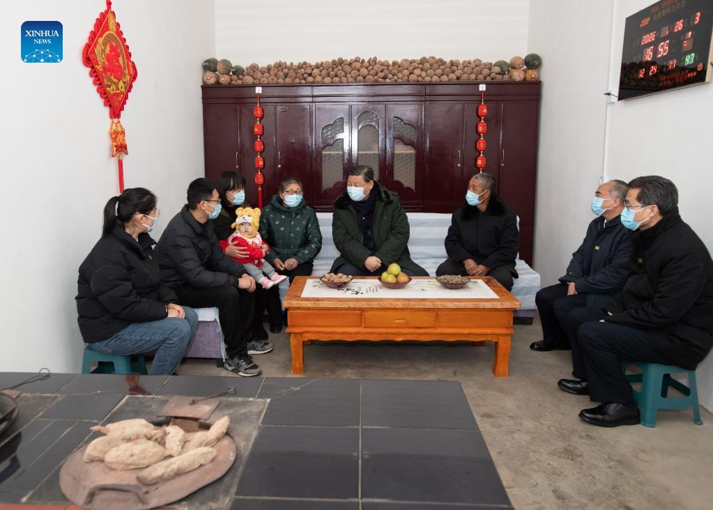 Chinese President Xi Jinping, also general secretary of the Communist Party of China (CPC) Central Committee and chairman of the Central Military Commission, visits a villager's home in Duancun Village, Sengnian Township of Fenxi County, north China's Shanxi Province, Jan. 26, 2022. Xi on Wednesday began his visit to Shanxi Province ahead of the Spring Festival, or the Chinese New Year. (Xinhua/Xie Huanchi)