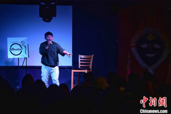A group of university students from southwest China’s Tibet Autonomous Region performed a talk show in the spoken language of Tibetan at a local restaurant in Lhasa during the evening of Jan. 22.