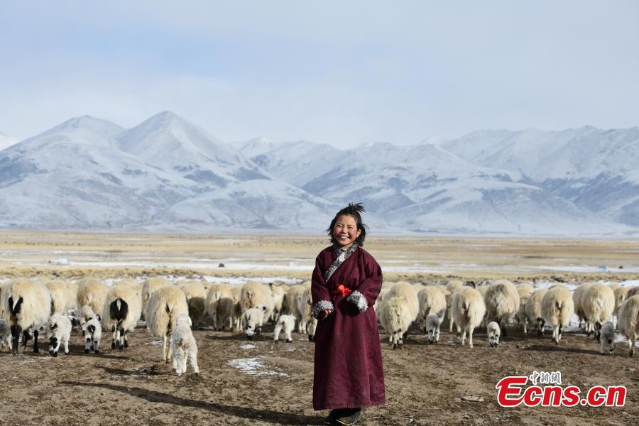 Photo taken on Jan. 27, 2022 shows a girl in Wuda village of Damxung county, southwest China's Tibet Autonomous Region. (Photo/China News Service)