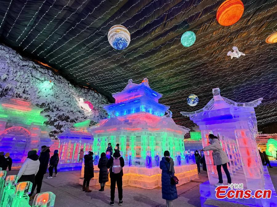 Tourists enjoy ice lanterns in Longqingxia of Yanqing District in Beijing, capital of China, Jan 27, 2022. (Photo: China News Service/Zhao Jun)