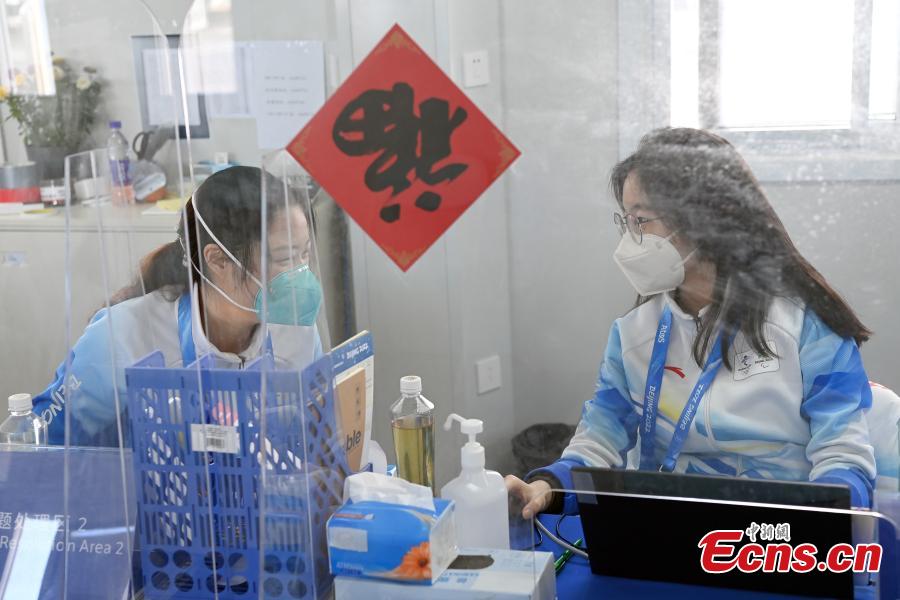 Volunteers work at the Main Media Center for the 2022 Olympic and Paralympic Winter Games in Beijing, capital of China, Jan 28, 2022. (Photo: China News Service/Mao Jianjun)