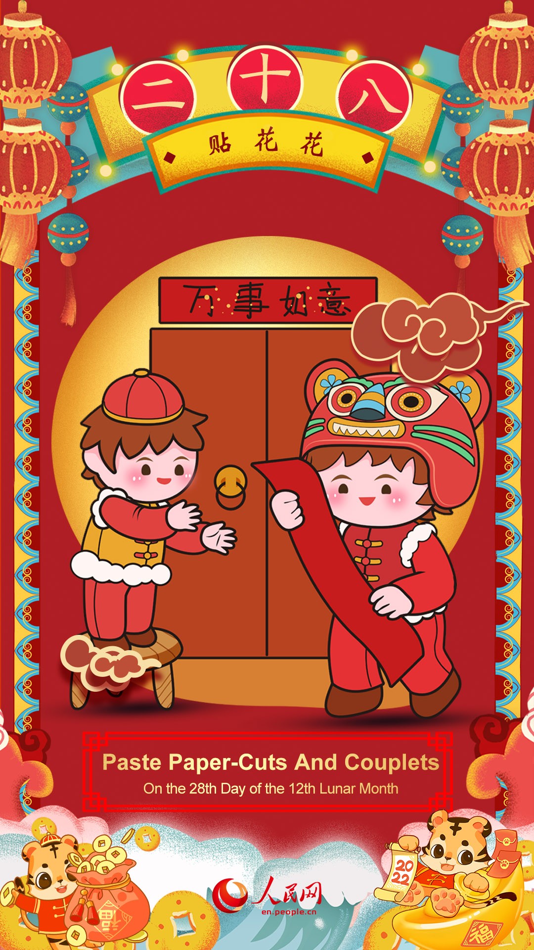 On the 28th day of the 12th lunar month, paste paper-cuts and couplets