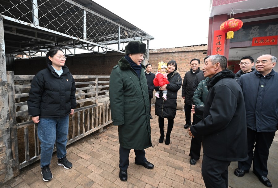 Chinese President Xi Jinping, also general secretary of the Communist Party of China (CPC) Central Committee and chairman of the Central Military Commission, visits a villager's home in Duancun Village, Sengnian Township of Fenxi County, north China's Shanxi Province, Jan. 26, 2022. (Xinhua/Li Xueren)